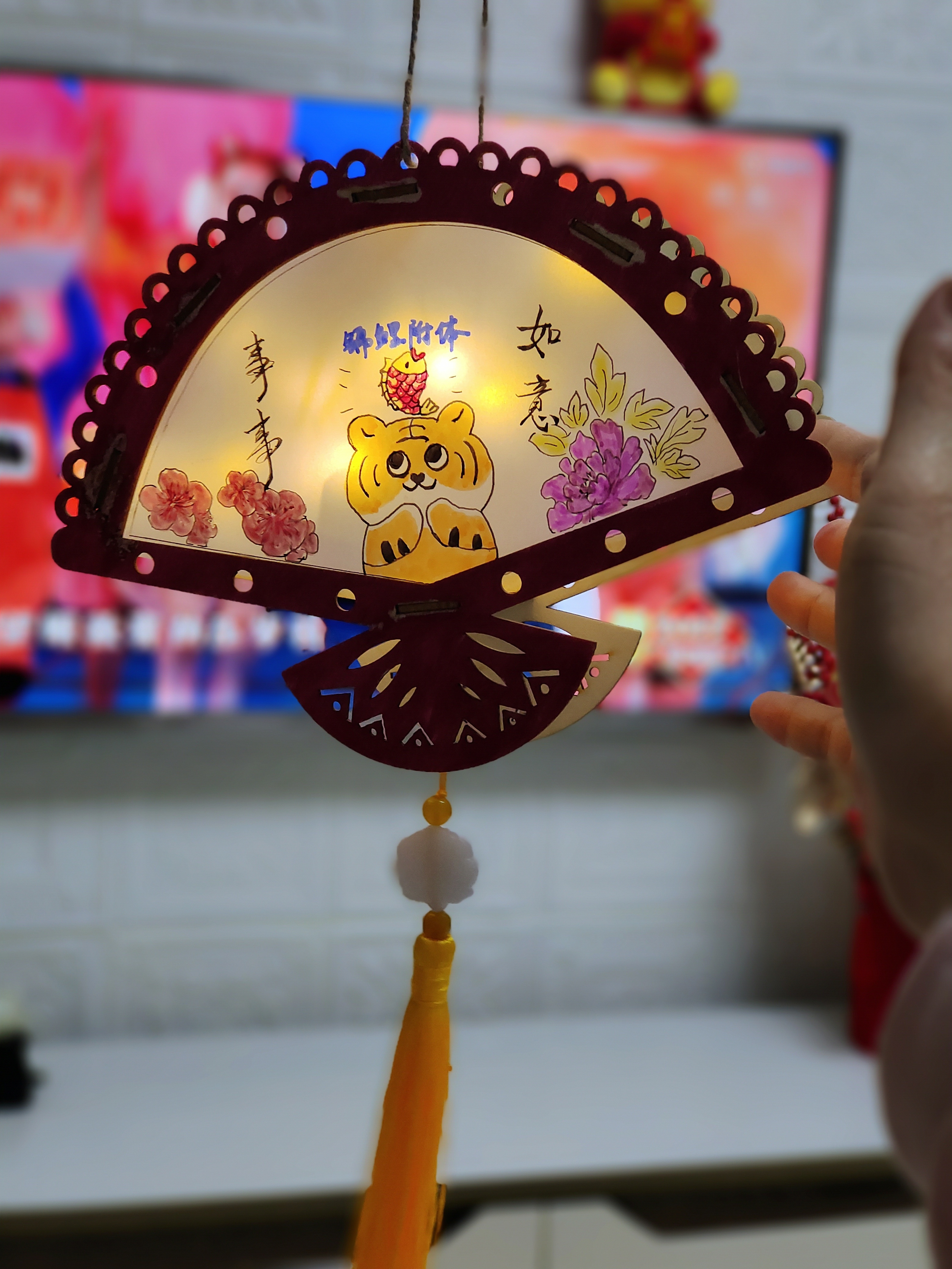 猜完燈謎,就到了大家最期待的做花燈環(huán)節(jié)。大家拿到材料包后,迫不及待地打開研究起來。集團的小哥哥小姐姐們小心翼翼修剪、鏤空好燈面,并仔細地將不同的燈面粘貼、拼接起來。最后給燈籠掛上流蘇,頂部裝好燈桿,內(nèi)部插上彩燈后,一個精美的元宵燈就誕生了?!斑@是我親手做的燈籠,象征幸福、祥和,簡直太好看了!”做好燈籠的邵山成就感滿滿,興奮地和燈籠合影留念。